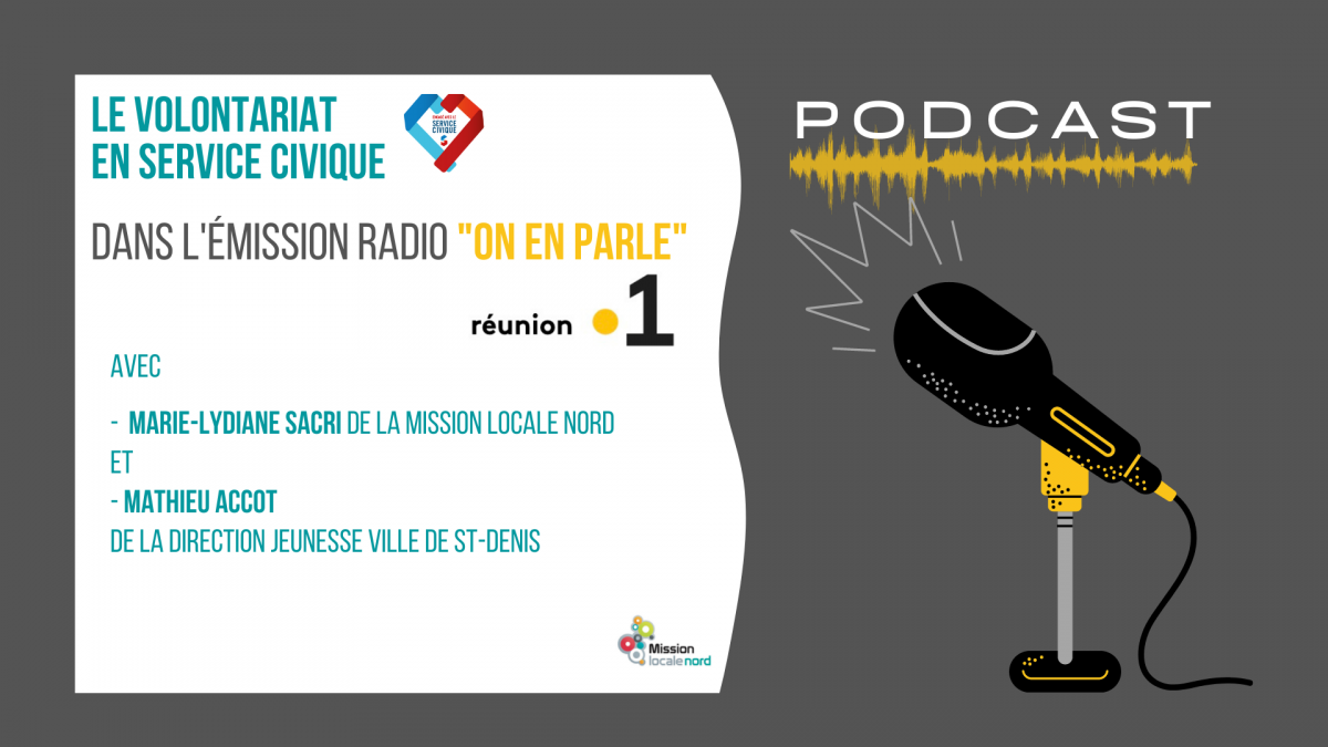 Zoom sur le volontariat en Service Civique dans l’émission radio « On en parle », présentée par Claude Montanet et diffusée vendredi 27 août 2021 sur Réunion la 1ère dont les invités étaient Marie-Lydiane Sacri de la Mission locale Nord et Mathieu Accot directeur Jeunesse de la ville de St-Denis.