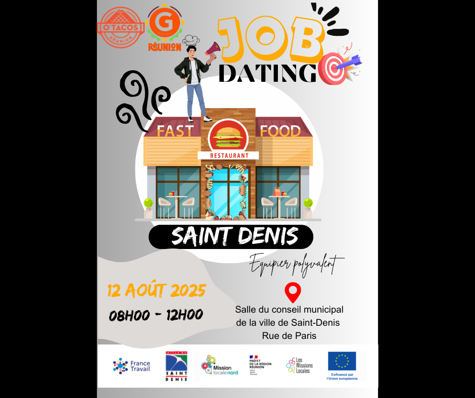 Tu as moins de 25 ans et tu cherches un emploi dans la restauration rapide ? Le mardi 12 août, G La Dalle et O’Tacos organisent un job dating à Saint-Denis pour recruter directement — sans attendre, sans relance. Une opportunité à ne pas rater.