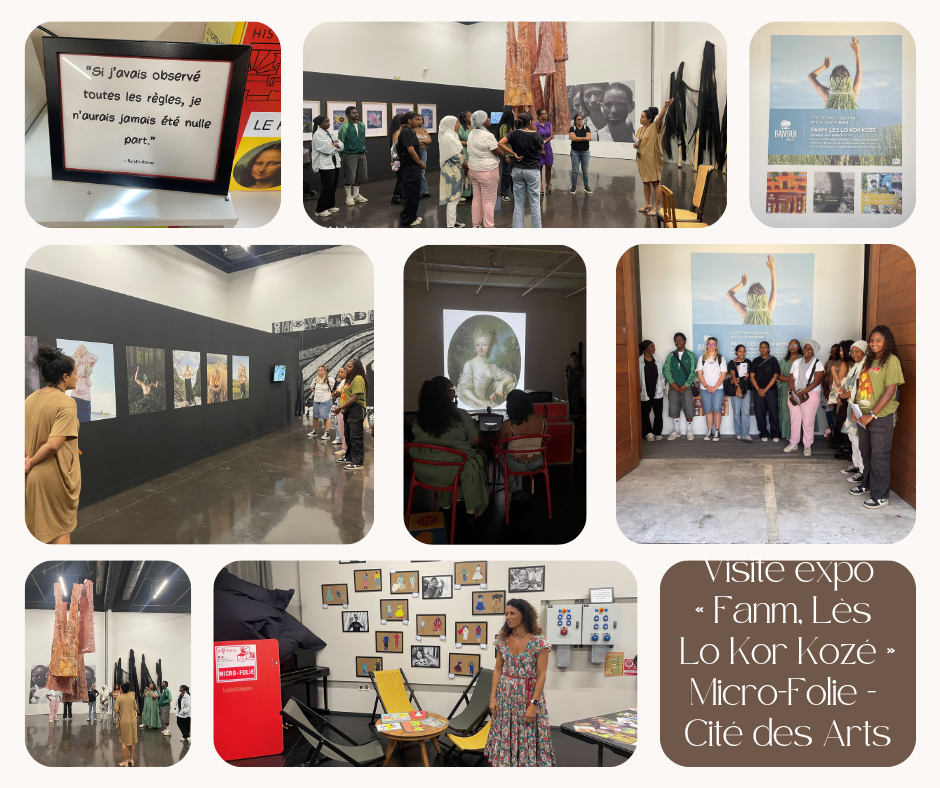 Les jeunes ont ensuite découvert l’exposition « Fanm, Lès Lo Kor Kozé », un parcours sensible à travers le travail de neuf artistes réunionnaises. Entre portraits, installations originales et univers intimes, chacun a pu saisir les différentes manières dont ces créatrices questionnent la place des femmes dans l’art… et dans la société.